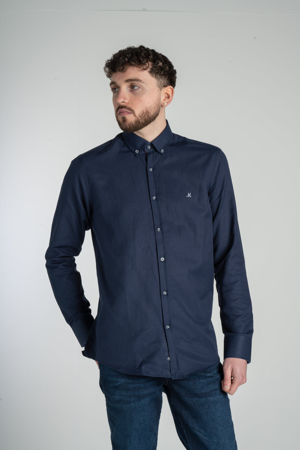 Contrast detailing inside collar and cuff. Also contrast trim along placket.