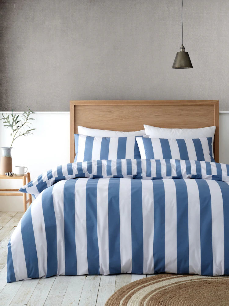 The Cove Stripe natural duvet cover set by Catherine Lansfield flaunts a charming contemporary take on classic striped motifs.