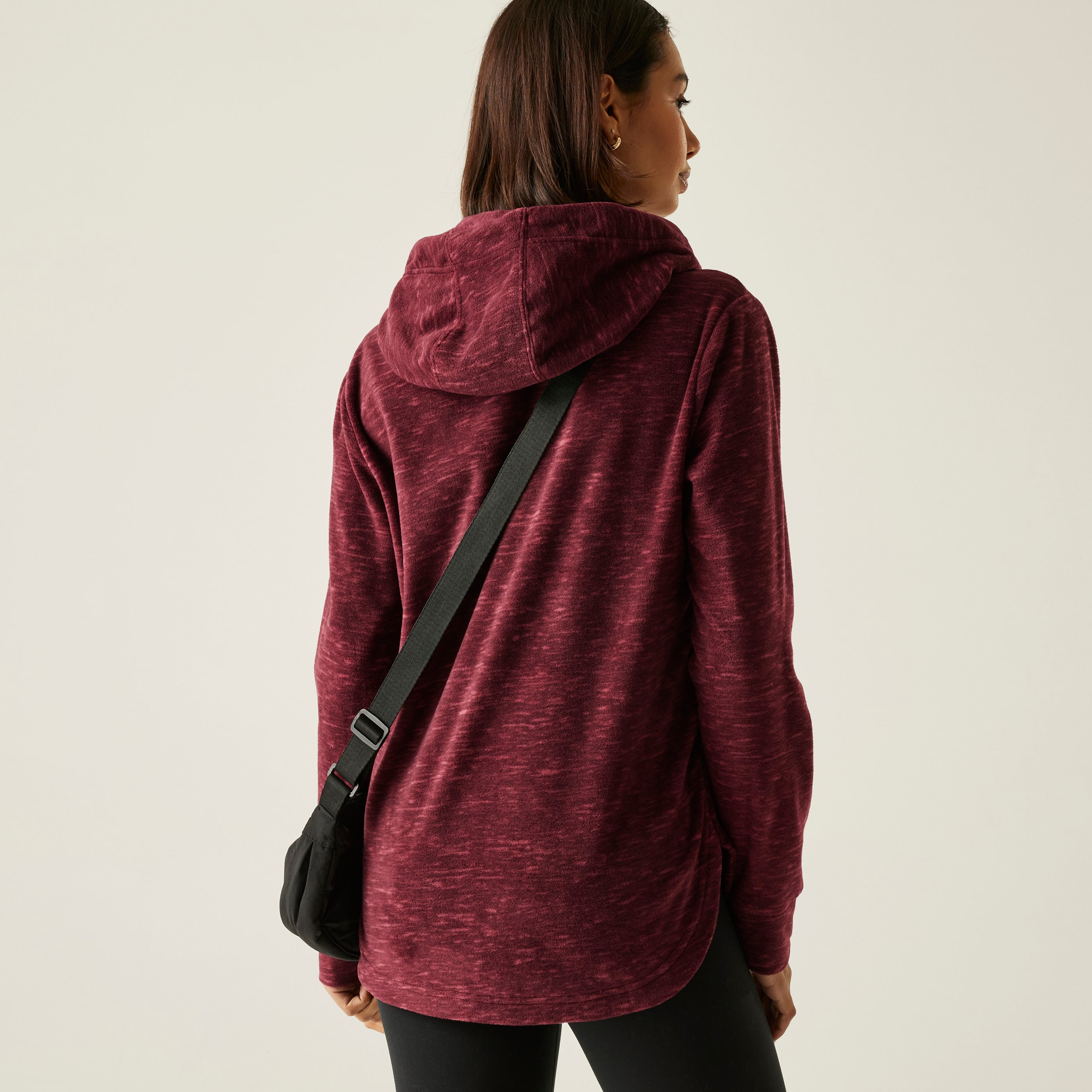 100% polyester peached back marl fabric - 170gsmGrown on hoodCotton drawcord hood adjusterCurved hem detailMade with recycled content