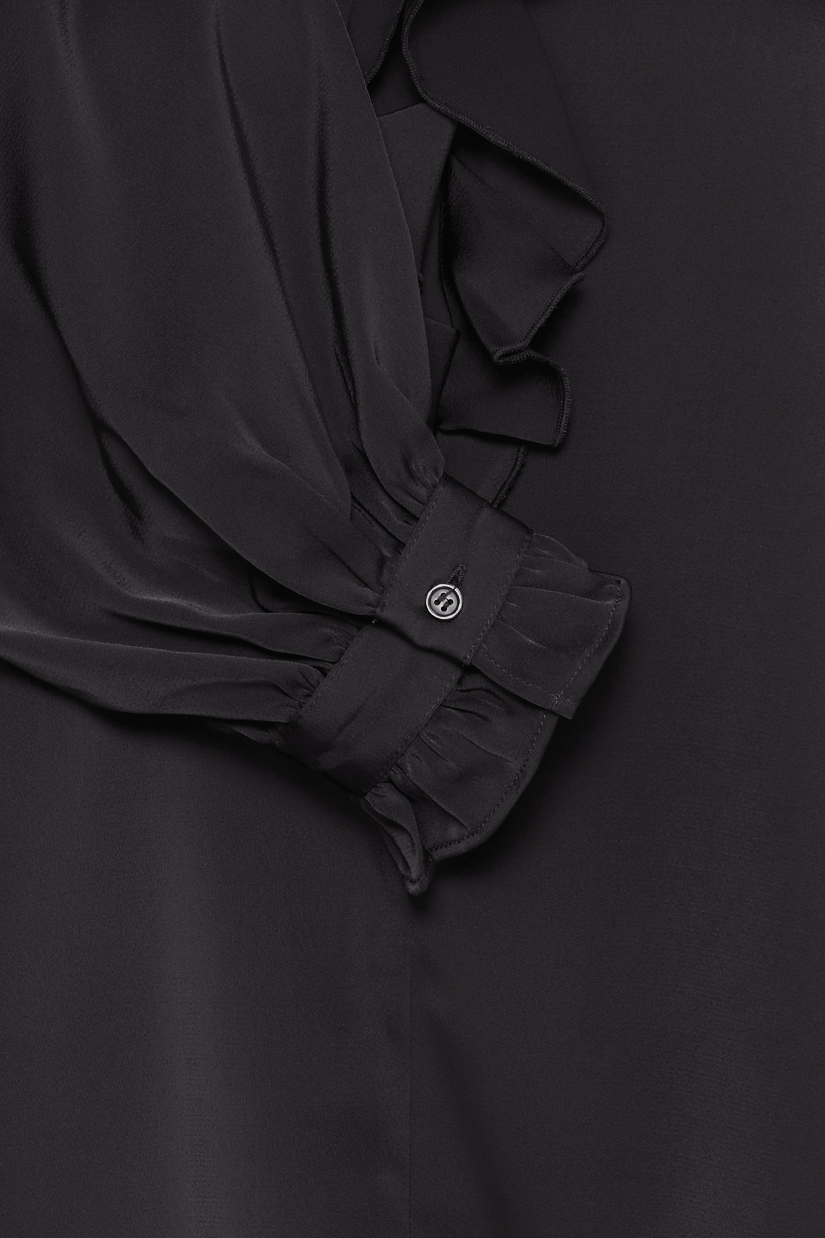 The Flair Frill Blouse in Meteorite combines timeless elegance with contemporary design. This long-sleeve blouse features a flattering V-neckline adorned with delicate frills that create movement and dimension, adding a refined feminine touch to your wardrobe. The meteorite hue—a sophisticated charcoal-grey tone—pairs effortlessly with both professional and casual pieces, making it a versatile essential for any occasion. The structured yet comfortable fit ensures you'll reach for this piece season after season.
