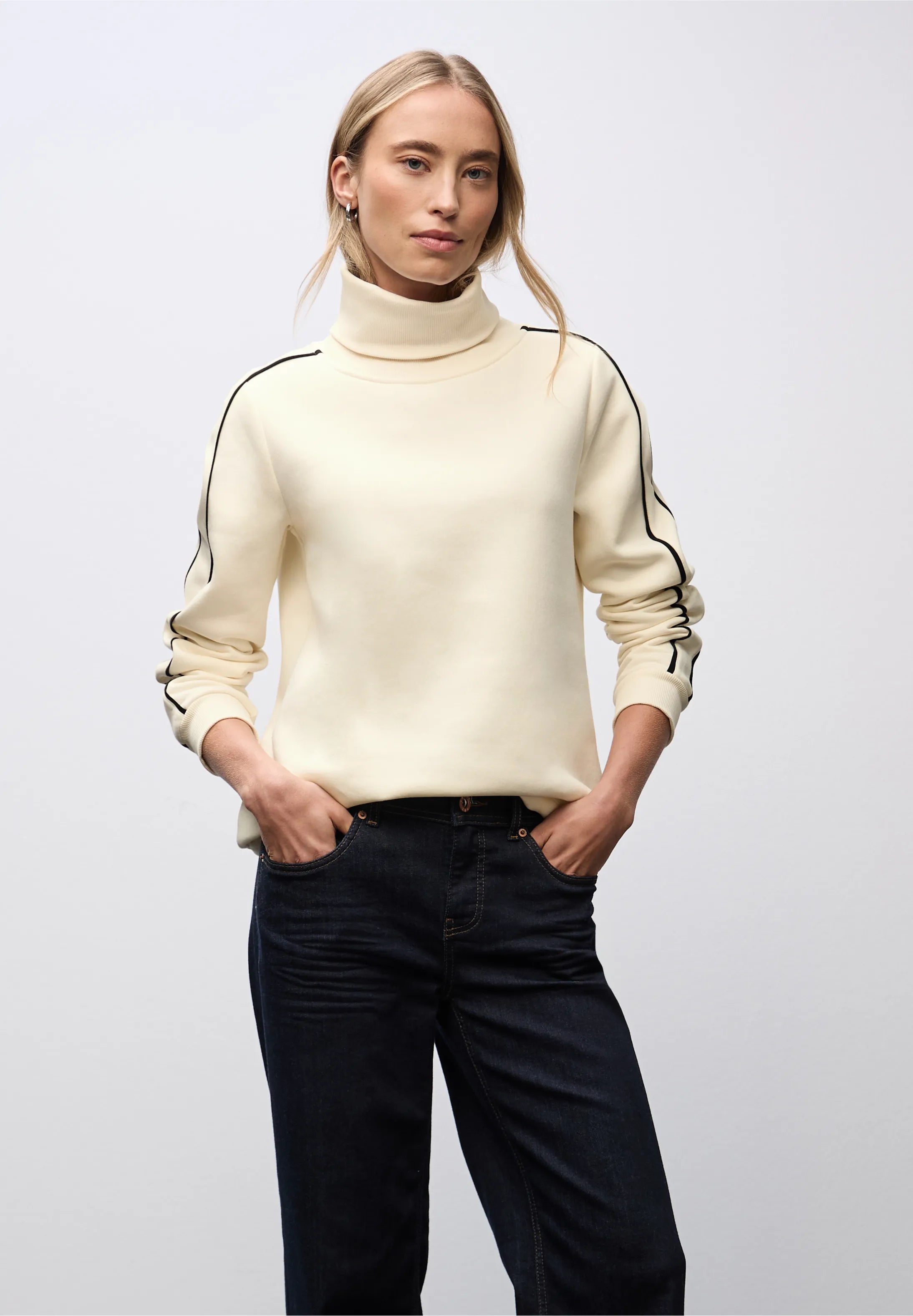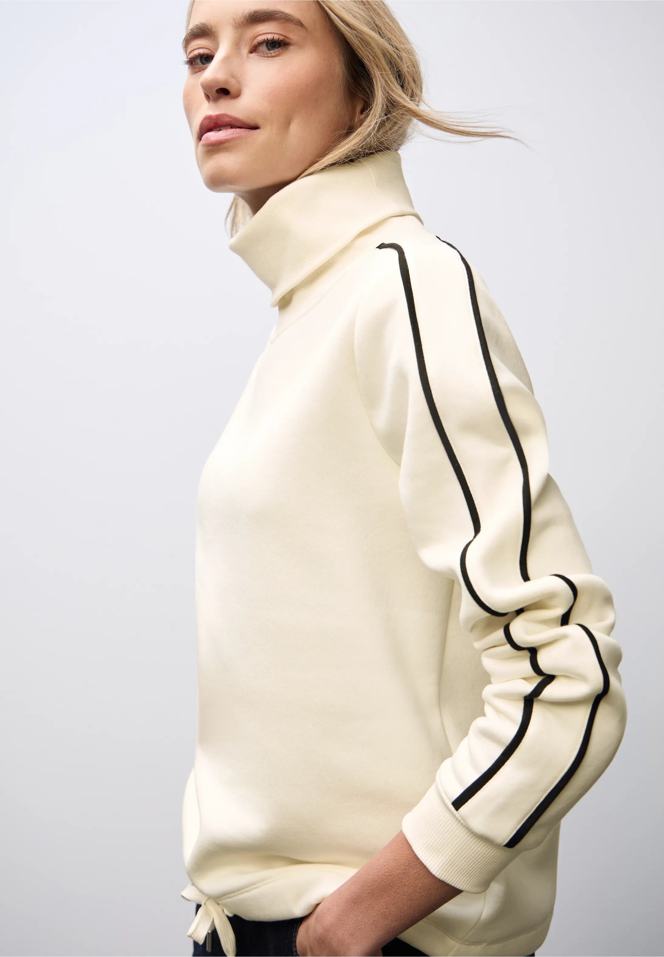 This women's sweatshirt from Street One impresses with a sporty, modern look and practical details like the drawstring hem. The stand-up collar and soft cuffs ensure a comfortable fit, while the tape details add subtle highlights. The soft sweat fabric makes this piece a cozy all-rounder.