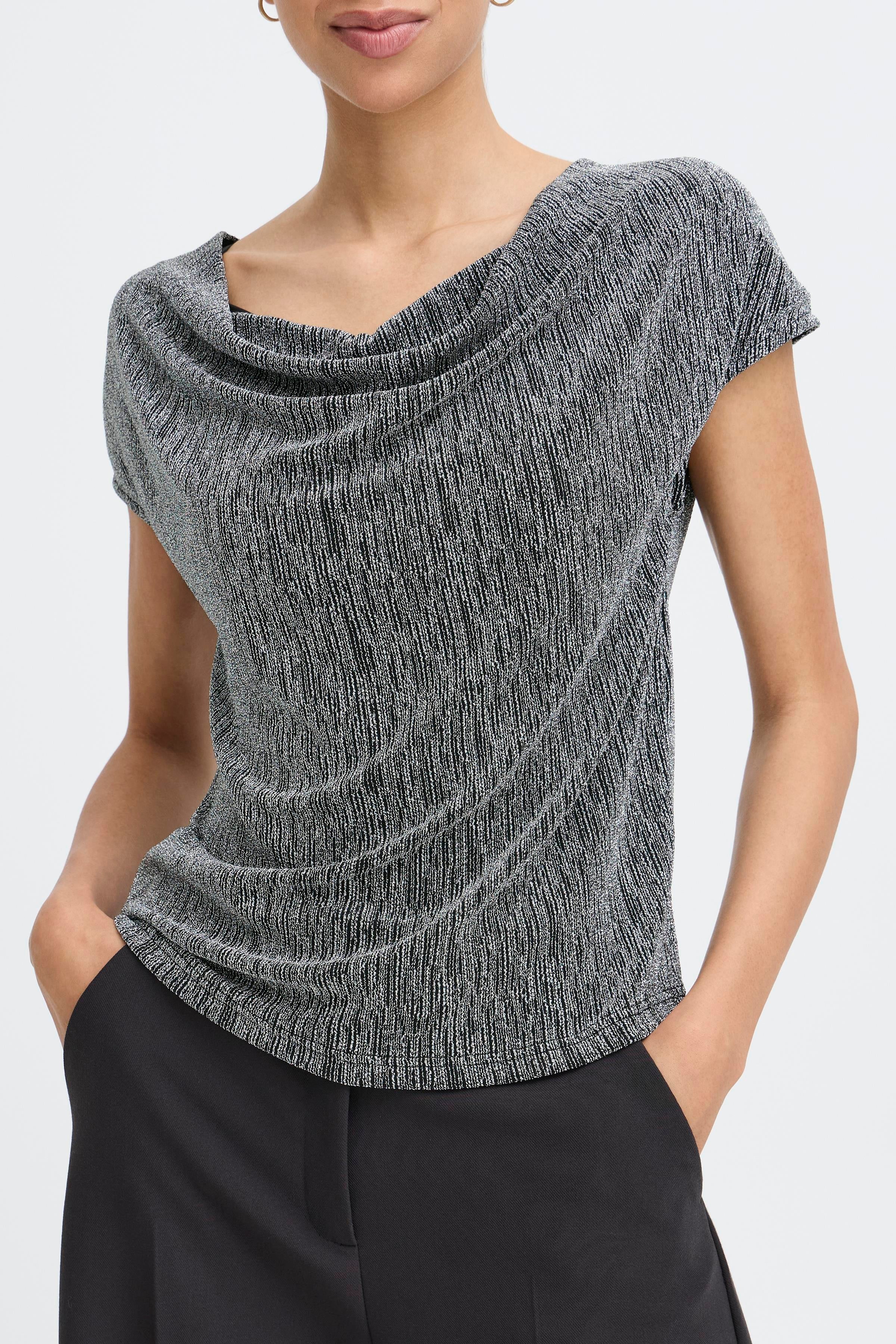 Elevate your wardrobe with this sophisticated cowl neck top, crafted from a luxurious metallic shimmer fabric that catches light beautifully. The regular fitted silhouette provides a flattering, structured look that transitions seamlessly from day to evening wear. The draped cowl neckline adds an elegant focal point, while the shimmering silver finish ensures you'll stand out at any occasion. Perfect for layering or wearing solo, this versatile piece delivers both style and refined polish.