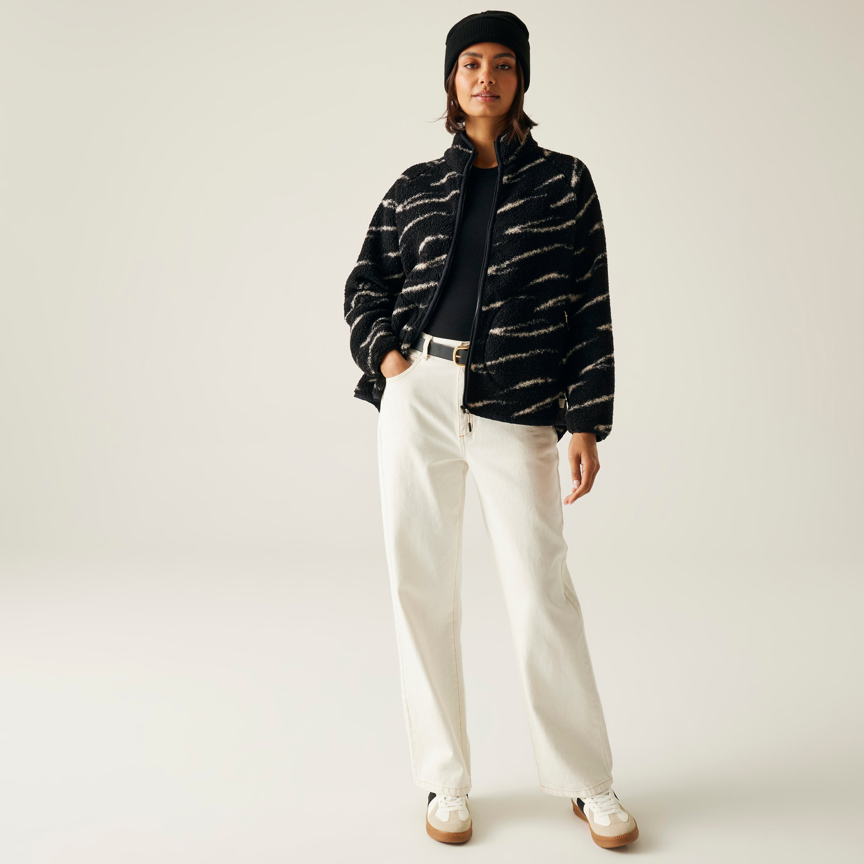 Women's Frankie Borg Full Zip Fleece | Black Light Vanilla Abstract Print
