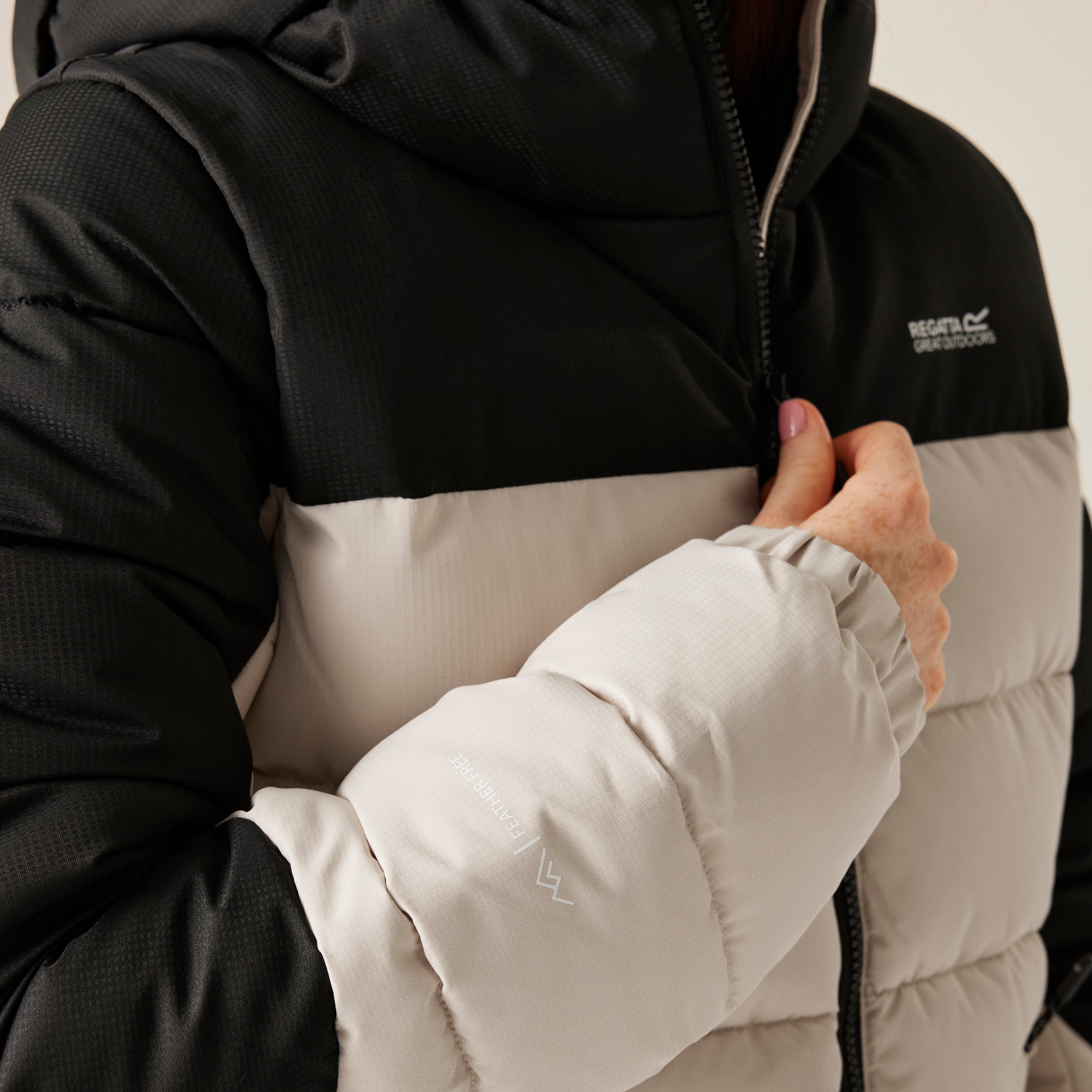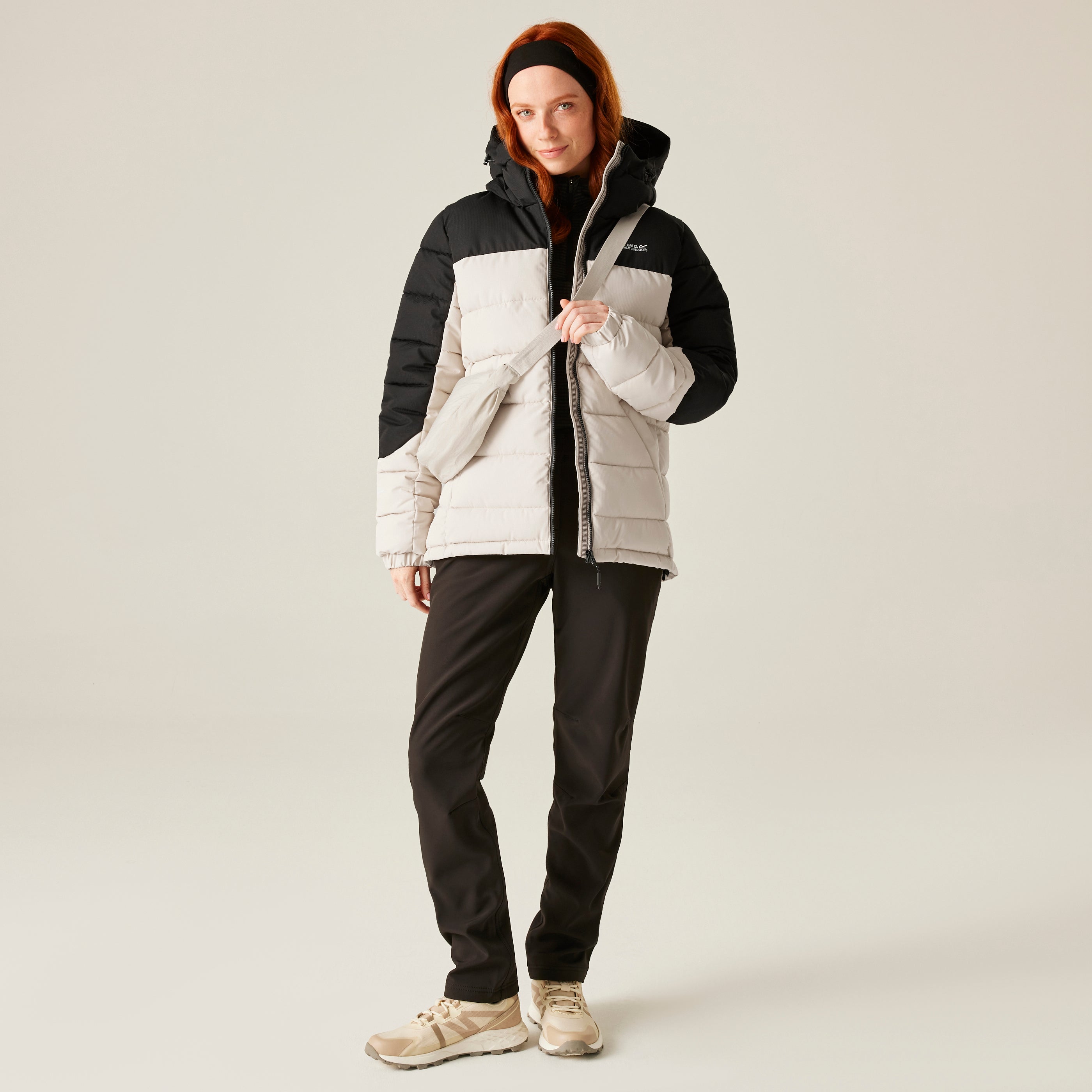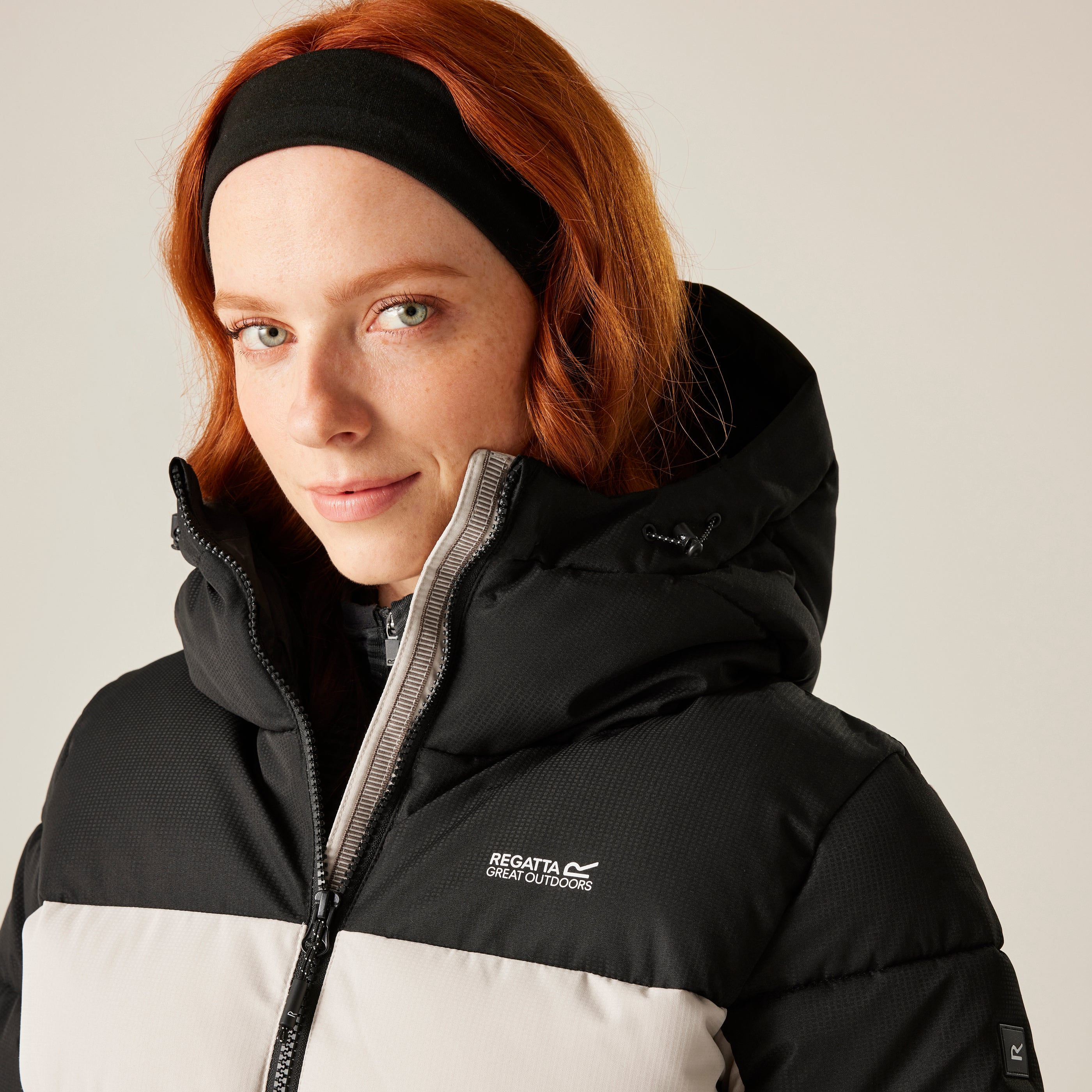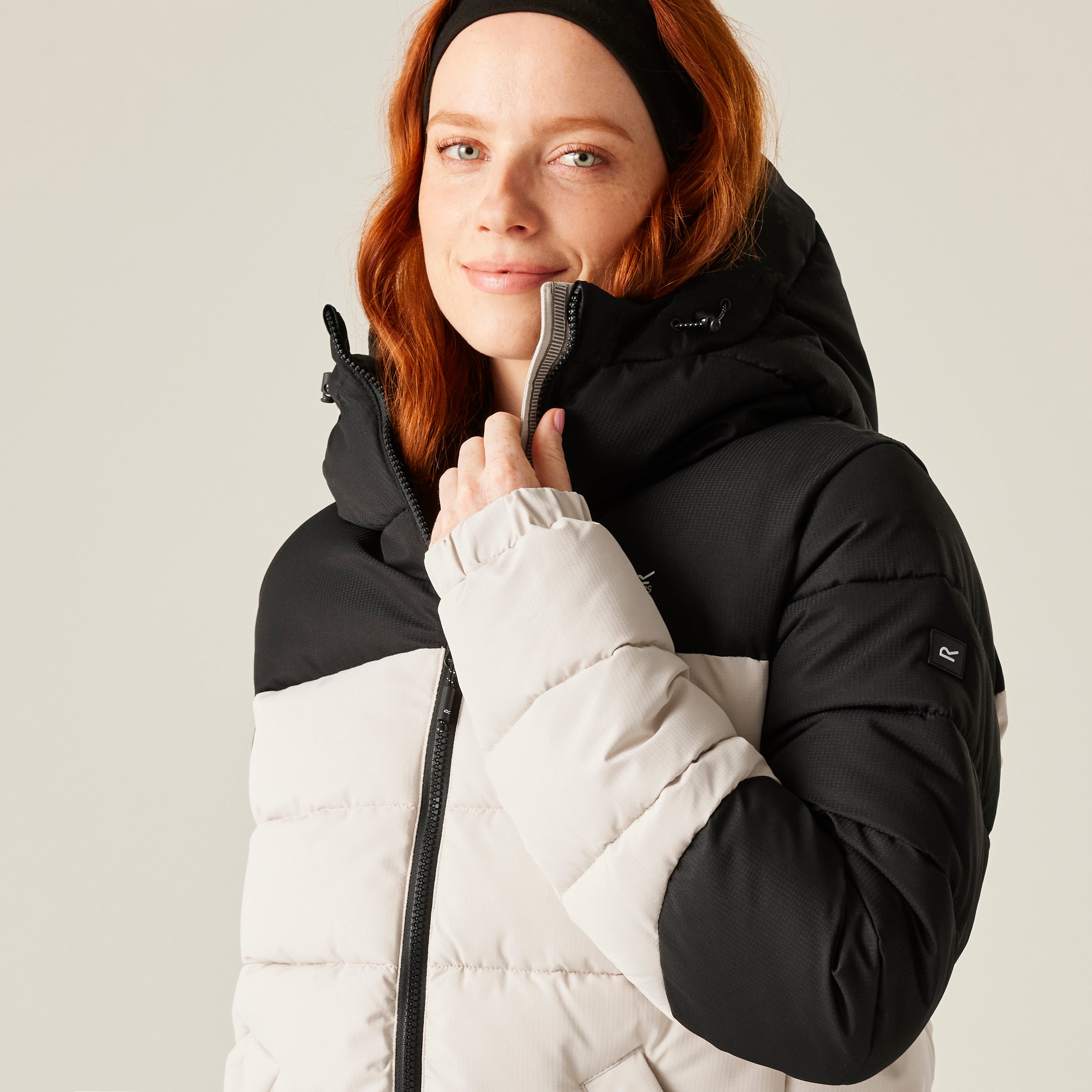 The Aldthorn women's jacket features premium synthetic down insulation to provide exceptional warmth without adding bulk. A water-repellent finish helps protect against unexpected showers, while a grown-on hood with adjusters offers extra coverage. Blending style and performance, it's a reliable choice for staying warm and comfortable on cold, damp days.