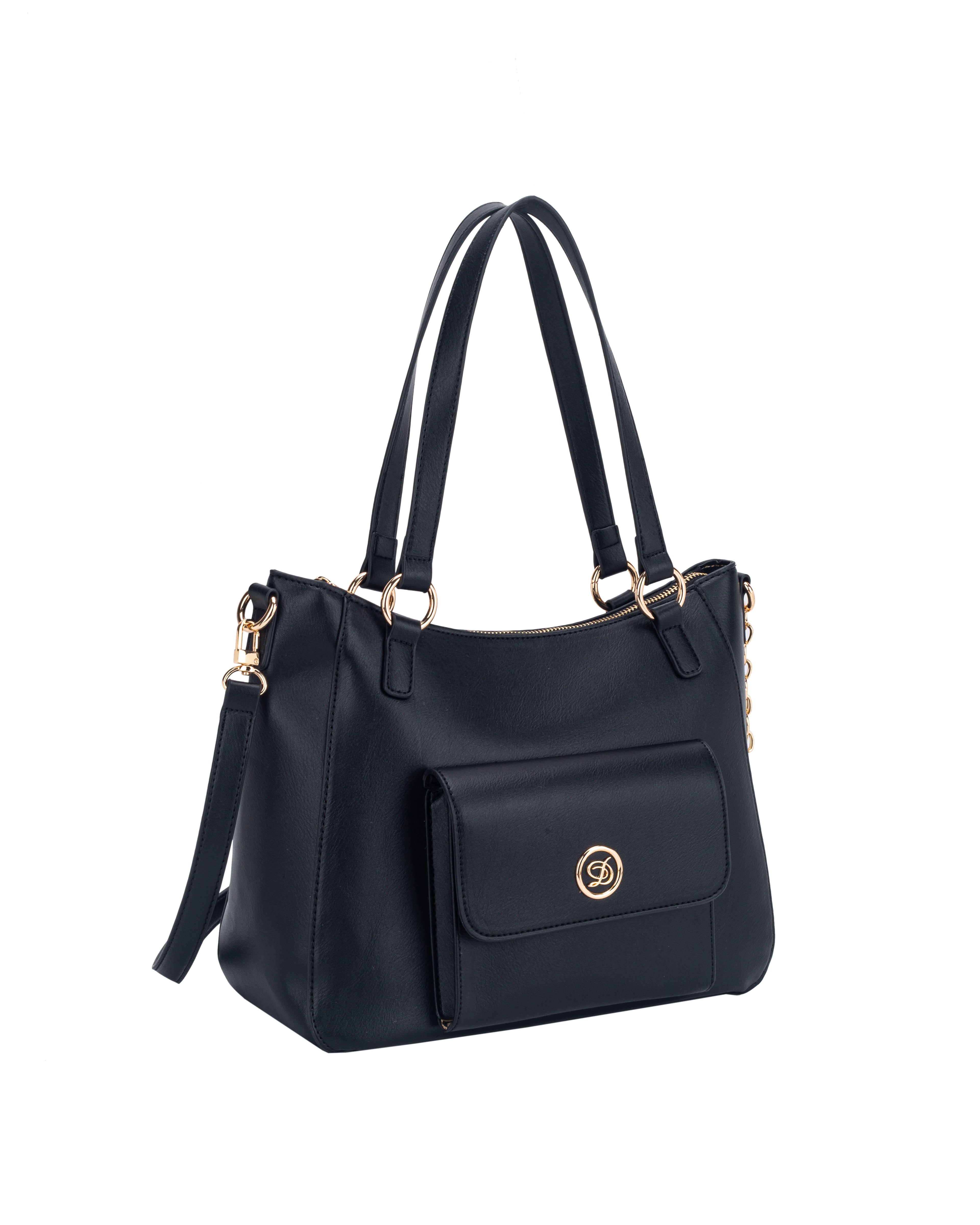The Aspen Front Pocket Bag offers ample space with a large main compartment complemented by a prominent square front pocket for easy access to essentials. Enhanced with elegant gold chain detailing, this bag blends functionality with a touch of sophistication, making it ideal for those who value both practicality and refined style.