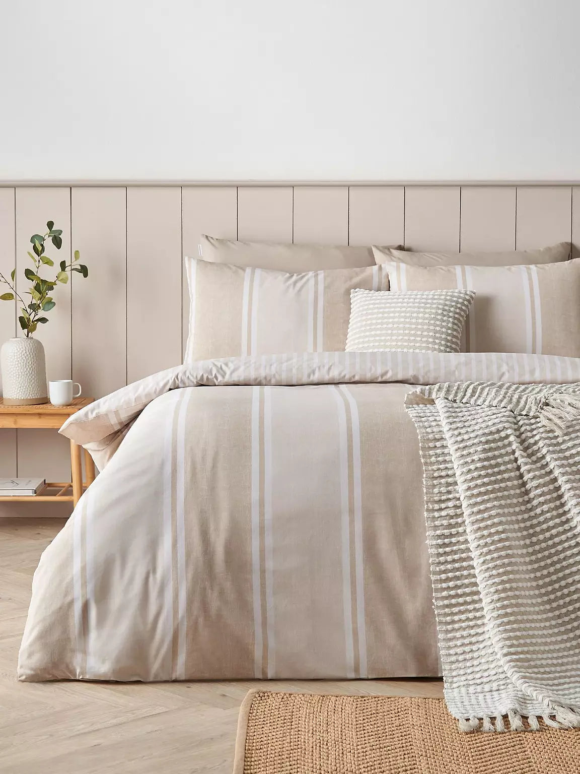 Catherine Lansfield is renowned for style and quality - Add classic style to your room, subtle textured bands in calming tones bring a style refresh. Fully reversible, this bedlinen offers two relaxed stripe looks in one. Created from easy-care polyester and soft cotton, blended for everyday use.