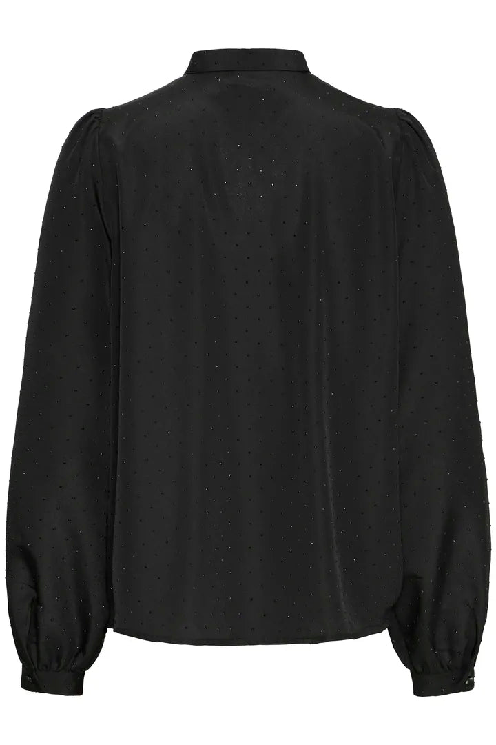 The Ikaja Bow Shirt in Meteorite features a refined high collar and elegant billowy sleeves, combining classic femininity with a modern silhouette. Crafted for a graceful drape, this blouse balances sophistication and comfort, making it a versatile choice for both professional and stylish casual settings.
