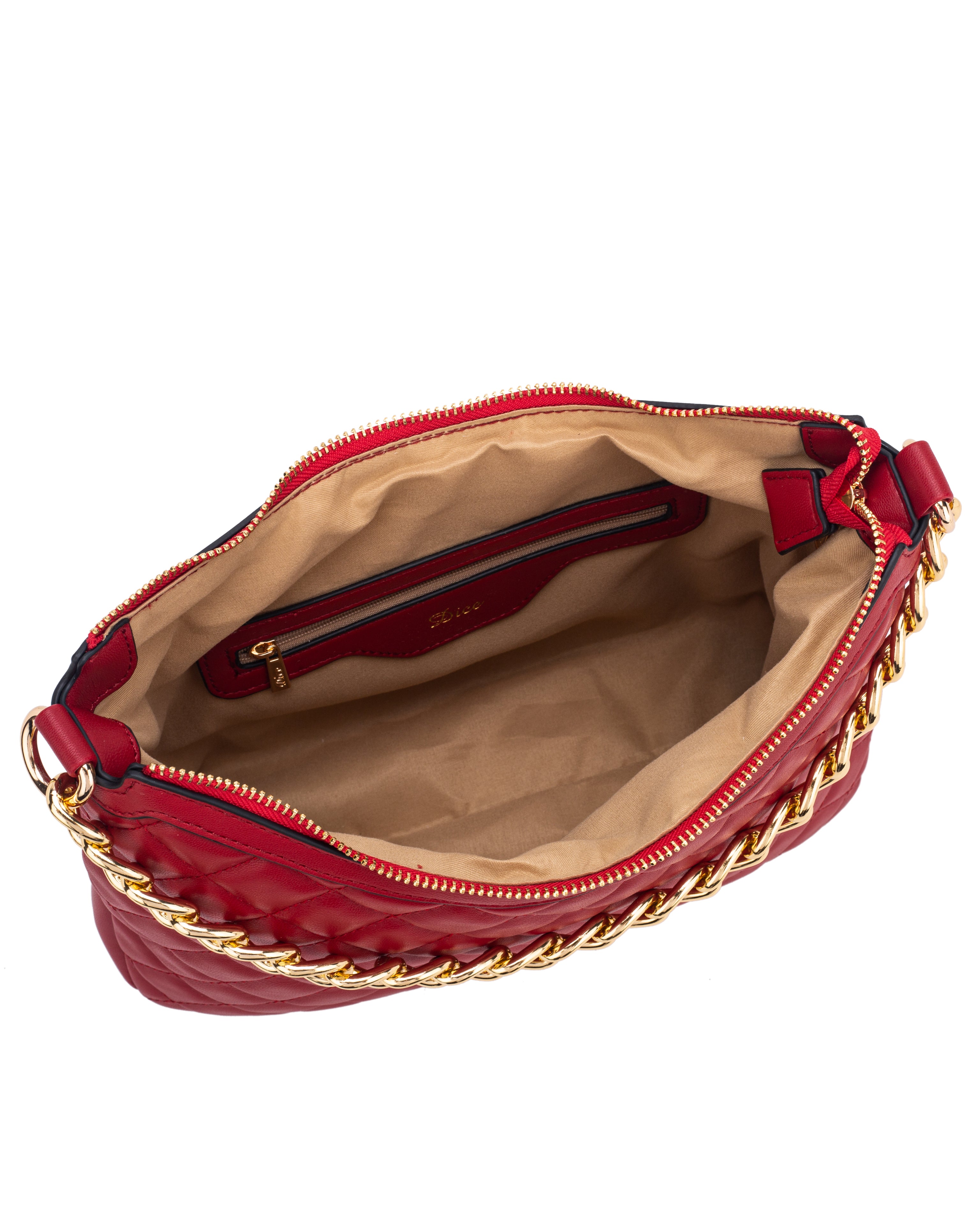 The Innsbruck Quilted Hobo Bag in red combines medium size practicality with luxury design. Featuring elegant quilting, gold hardware, and a chic gold chain strap, this stylish accessory adds a sophisticated touch to any outfit. Perfectly balanced for everyday use or special occasions, it offers refined craftsmanship and timeless appeal for those seeking both function and fashion.