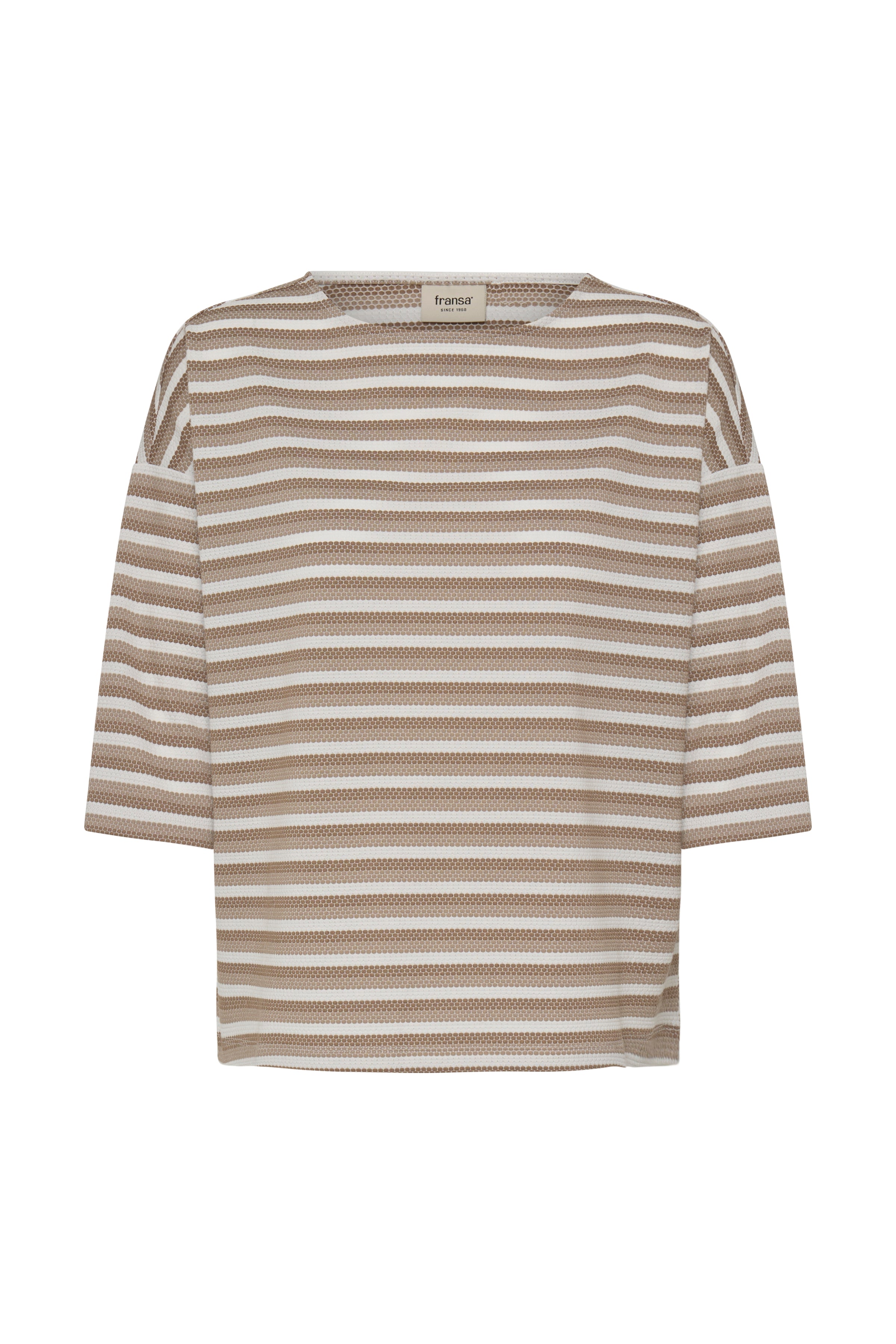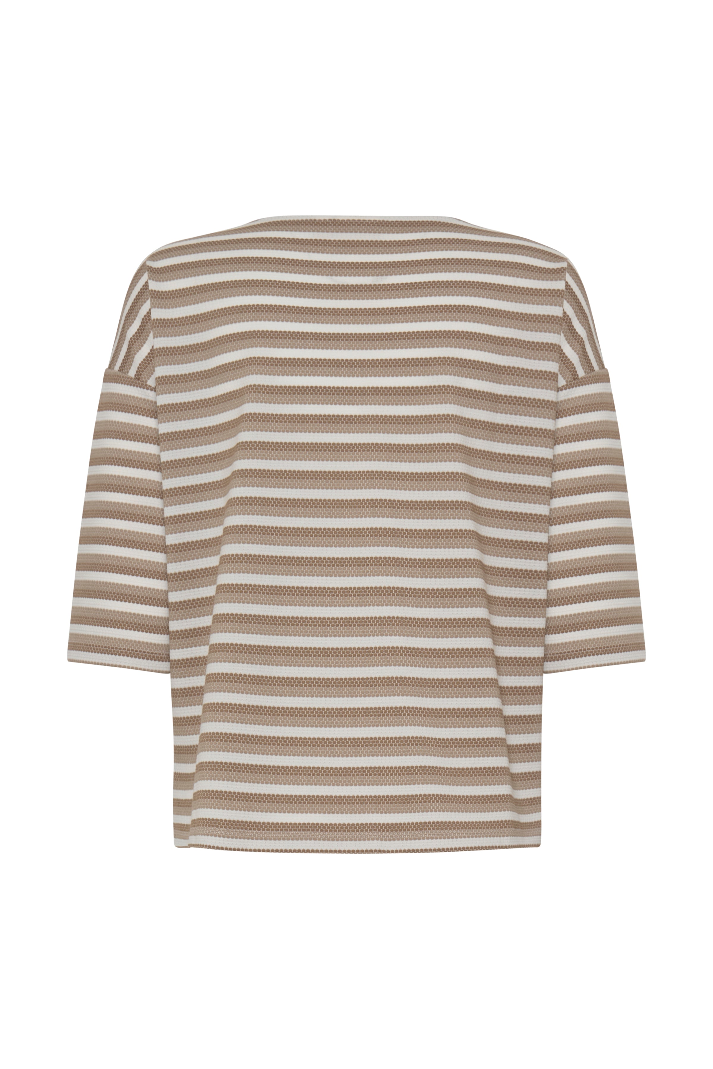 Effortless style meets everyday comfort in this relaxed tee. The classic boat neckline and all-over stripe pattern create a timeless look that pairs seamlessly with your wardrobe staples. Three-quarter length sleeves offer the perfect balance between coverage and breathability, making it ideal for layering or wearing solo. Crafted for a laid-back fit that flatters without clinging, this versatile piece transitions beautifully from casual weekends to relaxed workdays. A wardrobe essential that delivers understated sophistication.
