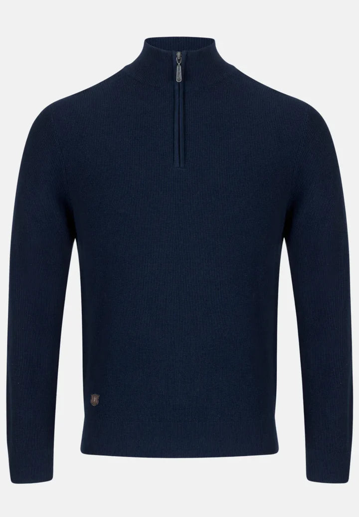 Immerse yourself in its luxurious 1/4-zip knit design, boasting a textured mini-waffle knit pattern that adds depth and visual interest.